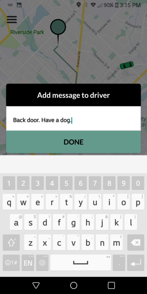 Tap on “ADD MESSAGE TO DRIVER” to input additional information for the driver.