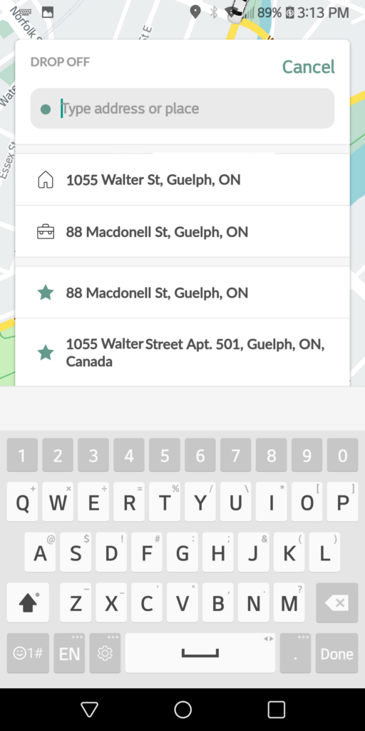One you are finished entering, tap “Done” on your keyboard and then if you are satisfied with the information, “SET DROP OFF“.